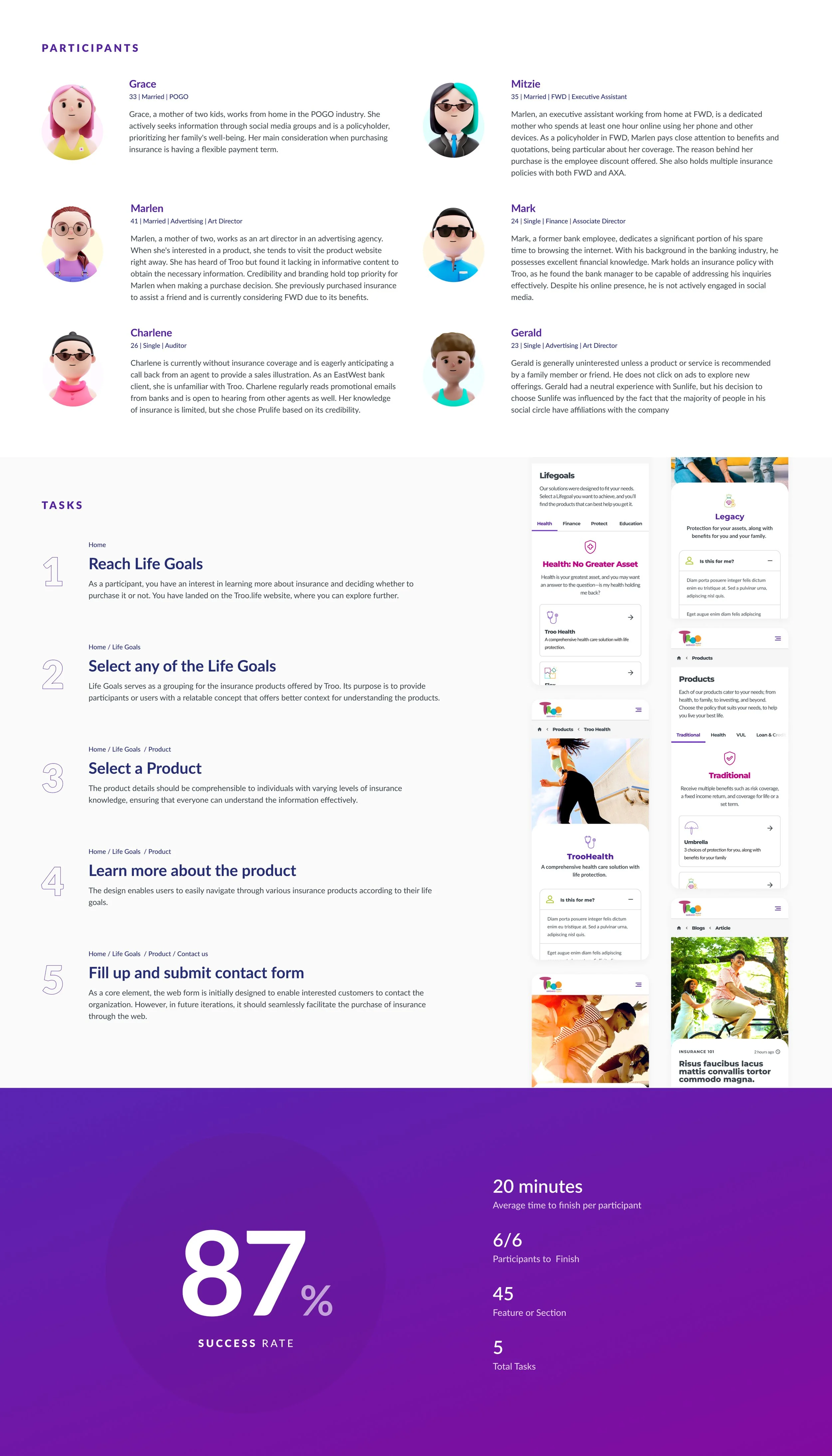 The redesign focused on improving accessibility and making insurance easier to understand by connecting products to relatable lifestyle and age-based scenarios. User insights were gathered through usability testing and feedback sessions, which guided refinements to content, layout, and navigation. The design was then aligned with the company’s rebrand, resulting in modern landing, product, and category pages that combined clear storytelling with engaging visuals. This created a more relatable, user-friendly website that built trust and improved engagement.